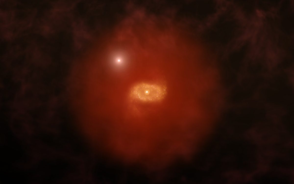 A. Angelich (NRAO/AUI/NSF)Young galaxies are often surrounded by a halo of hydrogen gas. Over time this gas can be pulled inward, where it can feed star production in the galaxy. While we’ve known these halos existed, it has been difficult to determine their size. But new research from the Atacama Large Millimeter/submillimeter Array (ALMA) has found that some galactic halos are surprisingly large.1