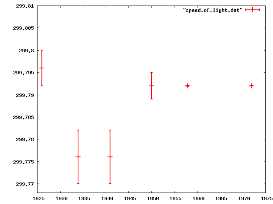 Adapted from Henrion & Fischhoff (1986)This line of thinking comes up a lot in introductory physics courses. Students are assigned to measure some experimental value such as the acceleration of gravity or the wavelength of a laser. Being novice experimenters, they sometimes make basic mistakes and get a result that doesn’t agree with the “accepted” value. When that happens, they’ll go back and check their work to find a mistake. However if they make mistakes in such a way that their errors either cancel out or aren’t apparent, they won’t tend to double check their work. Since their result is close to the expected value, they assume they must have done things correctly. This confirmation bias is something we all have, and can happen with the most experienced researchers. Historically this has been seen with things like the charge of an electron or the speed of light, where the initial experimental results were a bit off, and subsequent values tended to agree with earlier results more than the current values.
