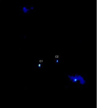 Bansal et al., NRAO/AUI/NSFWe have seen a few cases of binary supermassive black holes, but these are largely through indirect evidence. Seeing two black holes close together and proving they orbit each other takes careful observation over time. In 2009 a collection of radio telescopes across the world known as the Very Long Baseline Array (VLBA) observed two supermassive black holes that appeared to be close together.1 They appeared to be located in an elliptical galaxy known as 0402+379, making them an orbiting binary. But it was also possible that the two were a visual binary. That is, from Earth they could appear to be close together, but in reality one of the black holes could be much more distant.