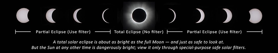 Rick Fienberg / TravelQuest International / Wilderness TravelOnce you have good eclipse glasses, proper safety is still important. Make sure that the glasses are not damaged or scratched, and don’t look towards the Sun unless your eclipse glasses are firmly in place. Make sure your children know the safety rules, and keep your eye on them while they view the eclipse. During the period of totality, you can look at the eclipse without glasses, but only when the Moon completely blocks the Sun.