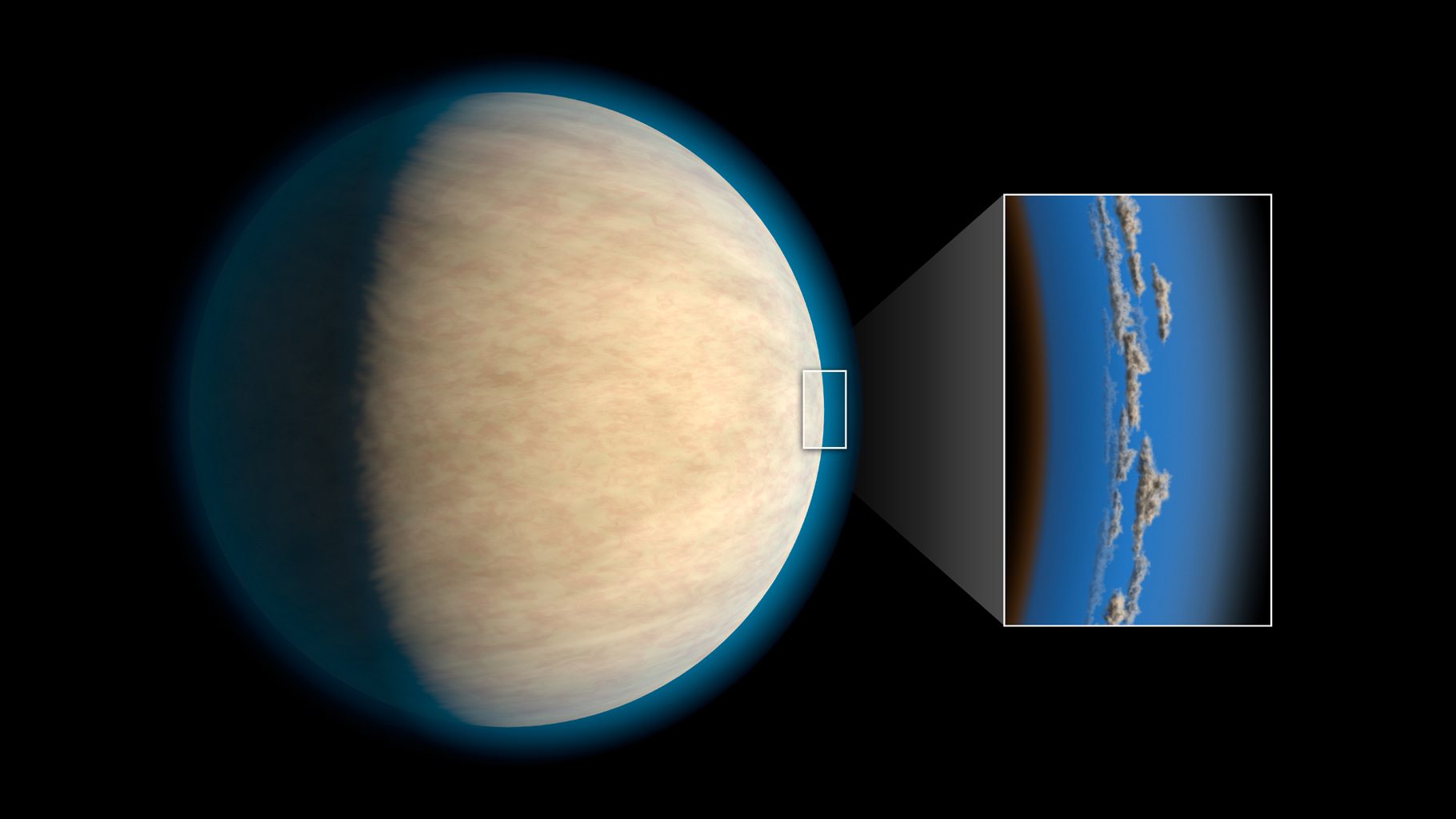 NASA/JPL-CaltechHot Jupiters are the most numerous of known exoplanets. These are large Jupiter-sized planets that orbit very close to their parent star. Because these planets have thick atmospheres, they are among the few exoplanets where we can actually study the composition of their atmospheres. This has led to an interesting mystery, where many hot Jupiters are seen to have water vapor in their atmospheres, while others appear bone dry. It now seems that the seemingly dry exoplanets could have water vapor in their atmosphere, but it’s simply hidden by a layer of clouds.