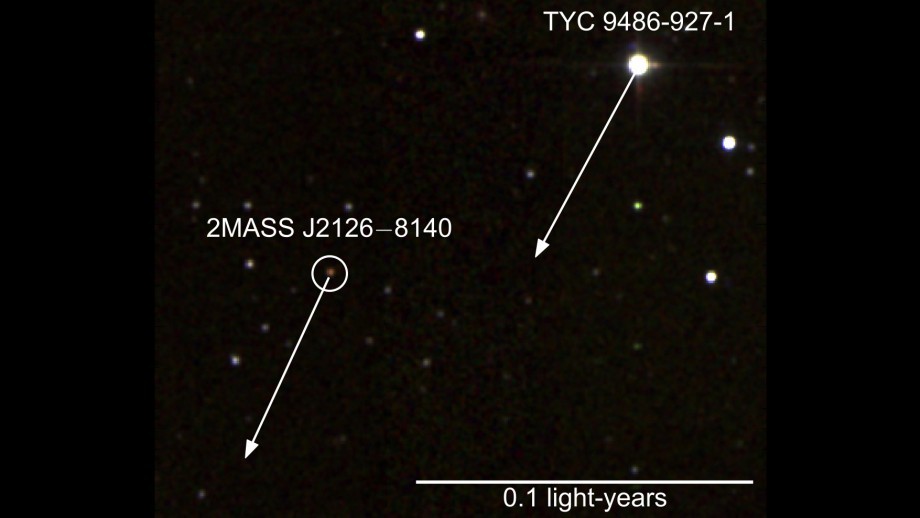 Now the fact that two stars happen to be close doesn’t automatically mean they are orbiting each other. It’s possible that they just happen to be making a close flyby at the moment. At several thousand AU, it’s also not possible to determine their motion precisely enough to confirm that they are orbiting. However there are a few clues that point toward being a common system. For one, their proper motion is basically the same. This means they are moving through the galaxy in the same direction, which would be unusual for a random close encounter. Another is that they are both young bodies, and seem to be the same age, which again would be unlikely for a random encounter. It’s possible that the two bodies formed within the same stellar nursery and simply happened to be expelled in the same general direction, but again that would be unusual. The alternative is that they really are a binary system. Since the brown dwarf is likely in the range of planetary mass, this would then be the largest known solar system.