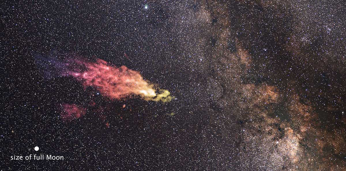 Just how the large cloud was ejected from the Milky Way is still a mystery. One possibility is that dark matter has played a role, capturing material from our galaxy as it passed through. To test that idea, however, we’ll need to study Smith’s cloud a bit more.